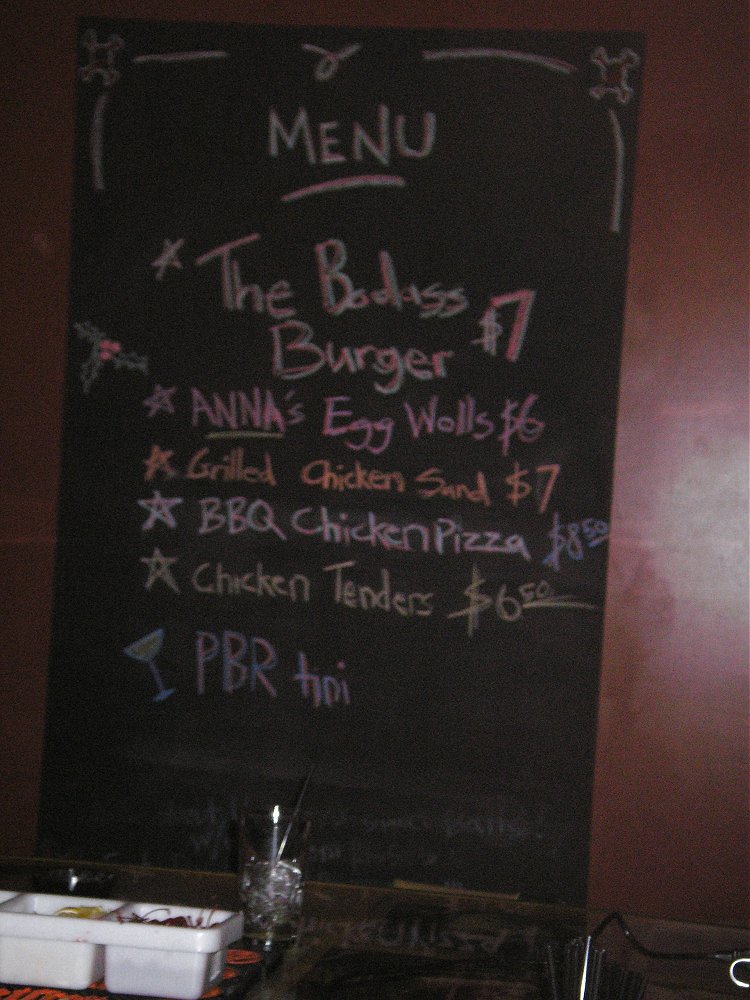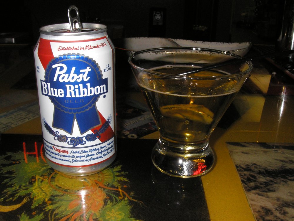 At the bottom of the menu, there it was, the newest drink at Hoop’s Bar – the PBRtini. This drink, of course, consists of PBR poured into a martini glass. Someone asked how much it was. Hooper thought for a minute and said, “$8.50.” Of course, he was joking. If it were on the menu at Swig, they probably WOULD charge $8.50.