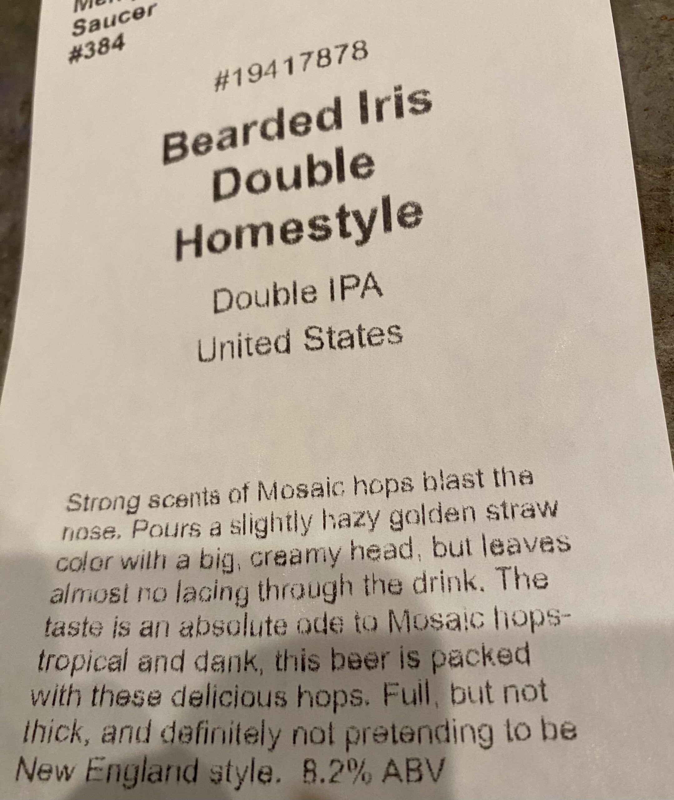 I traded in my Easter egg for a Bearded Iris Double Homestyle, beer number 180 toward my ninth plate at the Saucer.