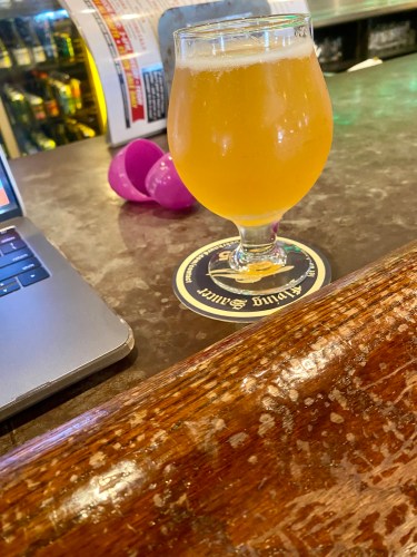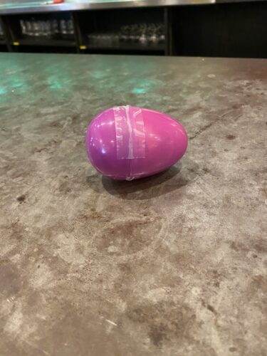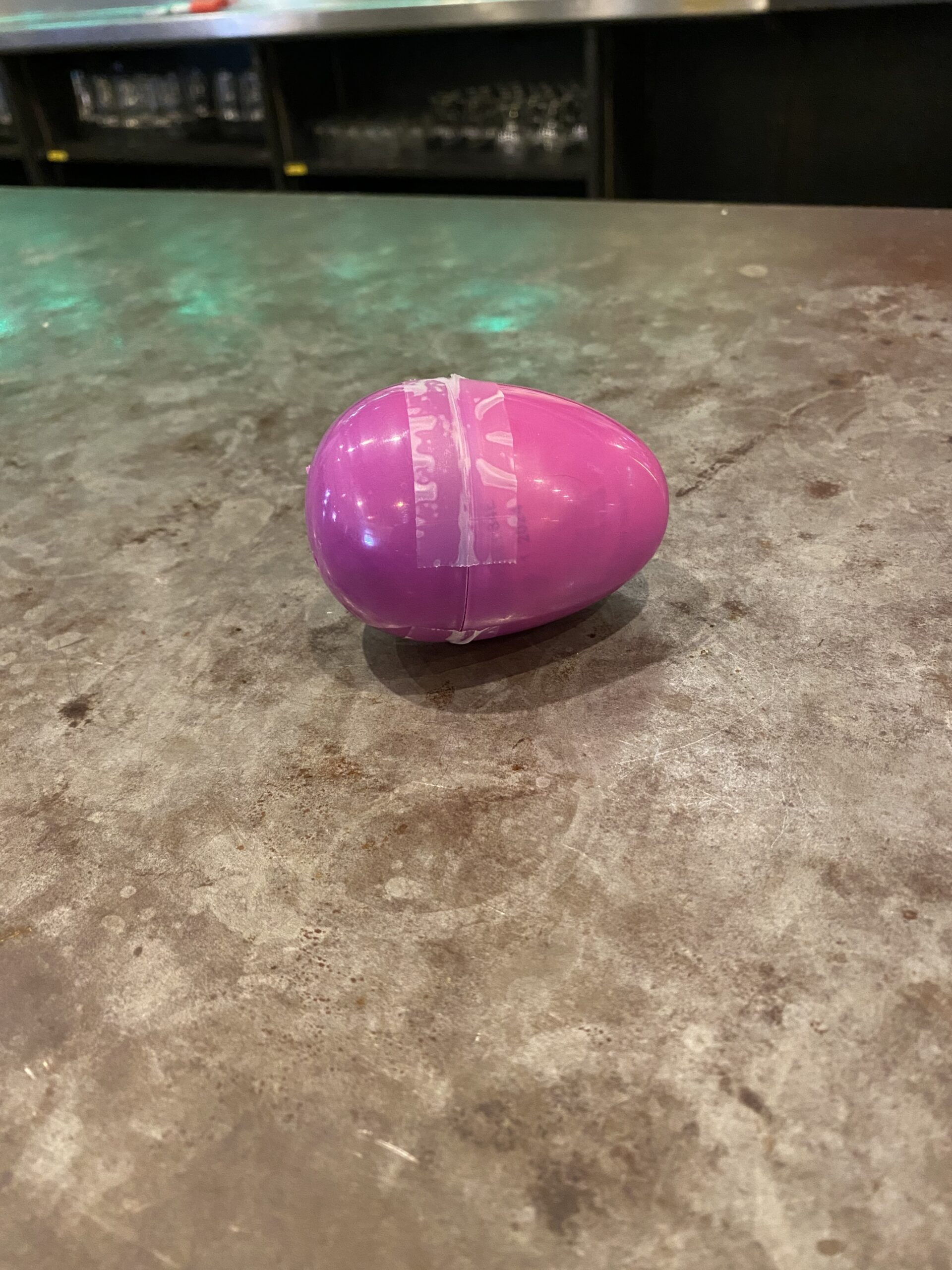 My walk ended at the Flying Saucer, where I found this Easter egg. It contained some candy and a piece of paper that read, “1 free beer.”