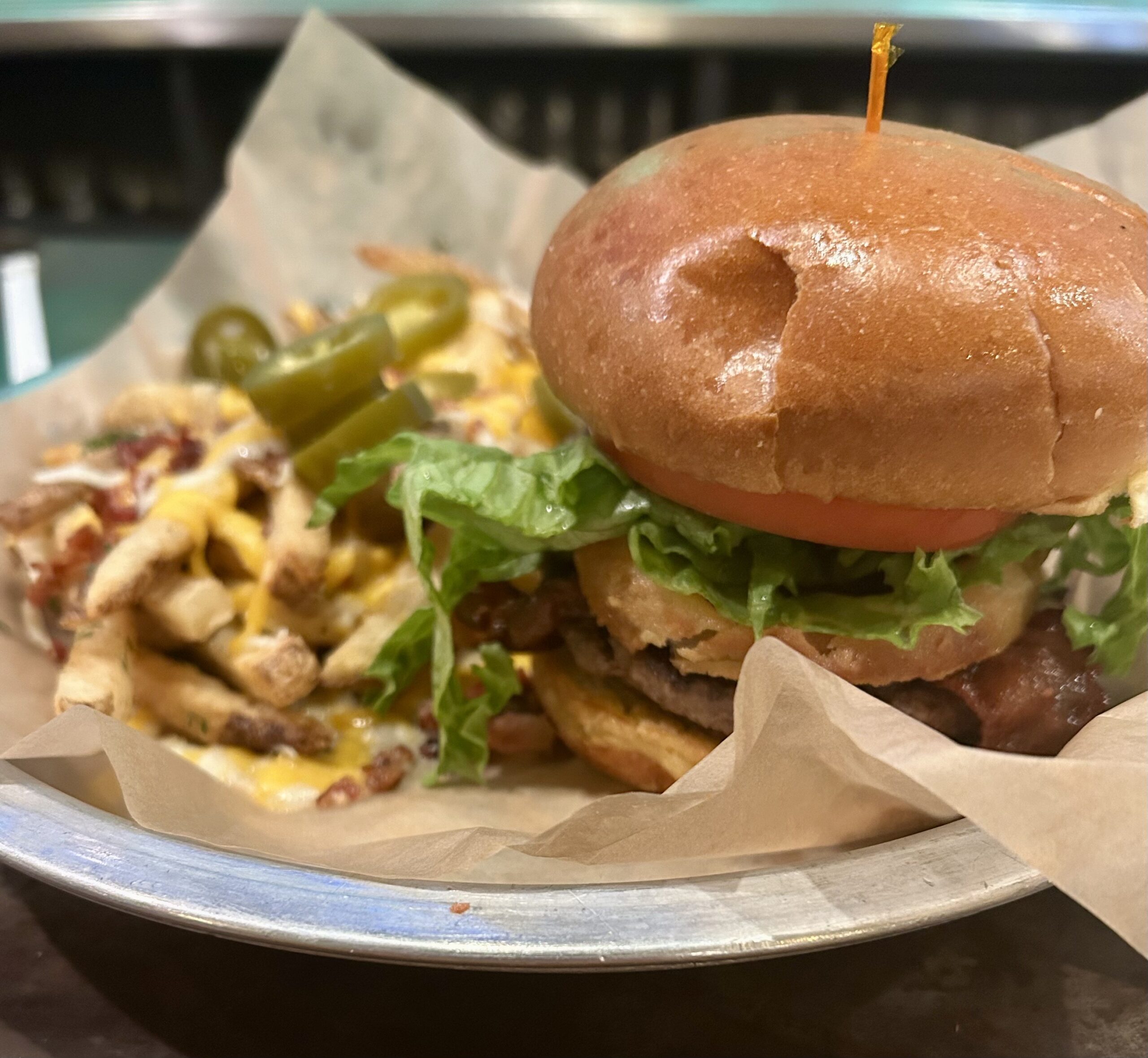I made it to the Saucer for their $12 Downtown Dining Week special, the Doc Holiday burger with loaded fries. Those jalapenos lit me up! You can get the DDW deals through Sunday.