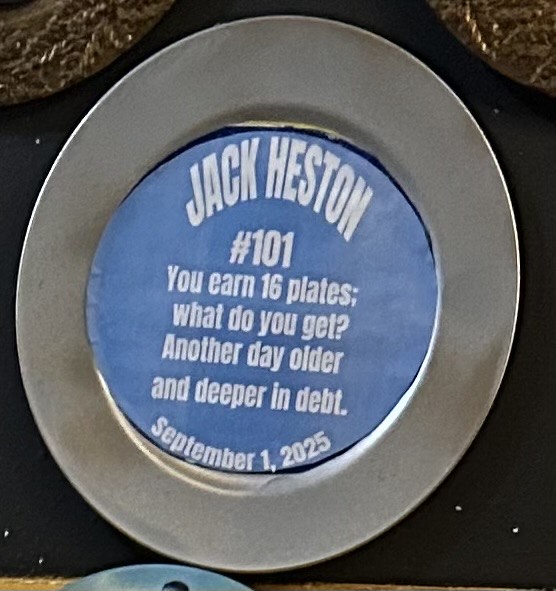 Next up was a visit to Flying Saucer, where I noticed a new, cleverly-worded plate on the wall.